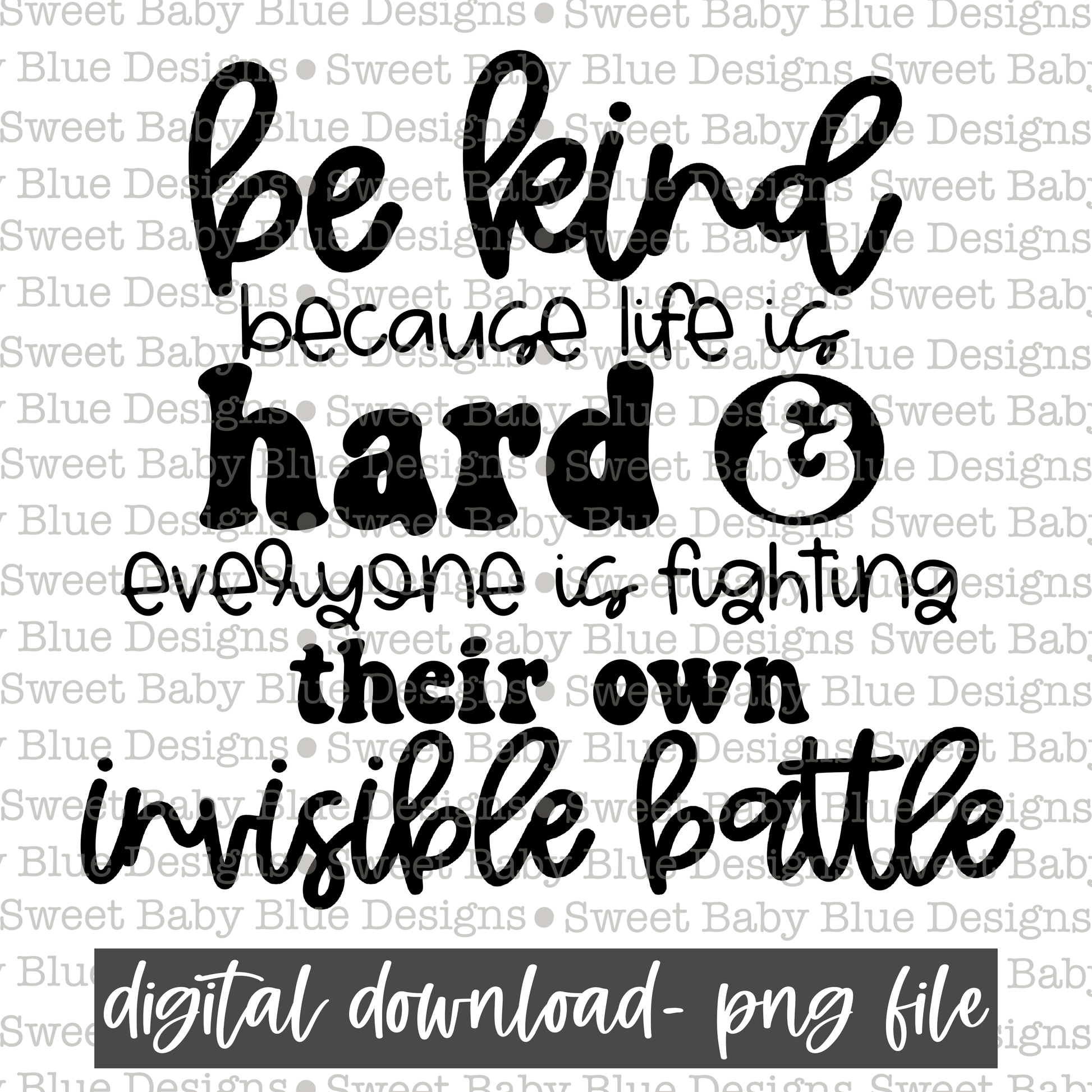 Be kind because life is hard & everyone is fighting their own invisible battle - Single color- 2021- PNG file- Digital Download