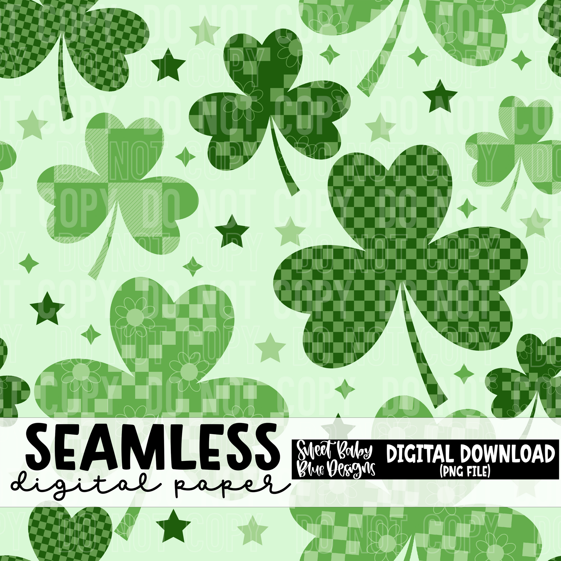 Clover checkered- St. Patrick's Day - Seamless - Digital paper- 2025 - PNG file- Digital Download