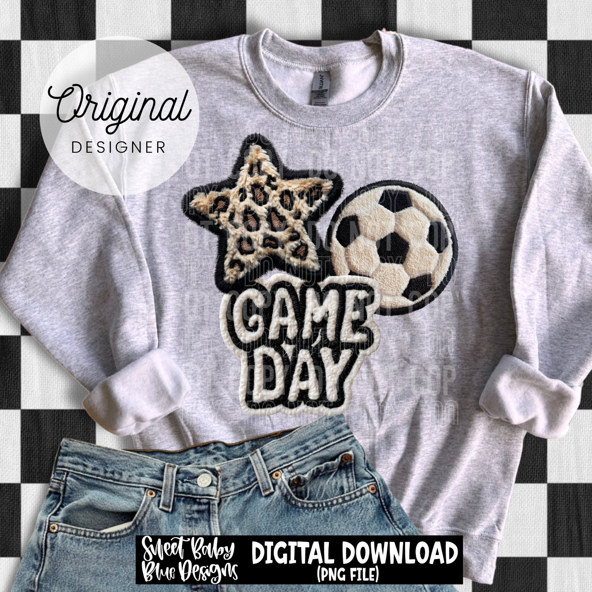 Game Day Soccer Leopard Star- Faux Embroidery - 2026 - PNG file- Digital Download