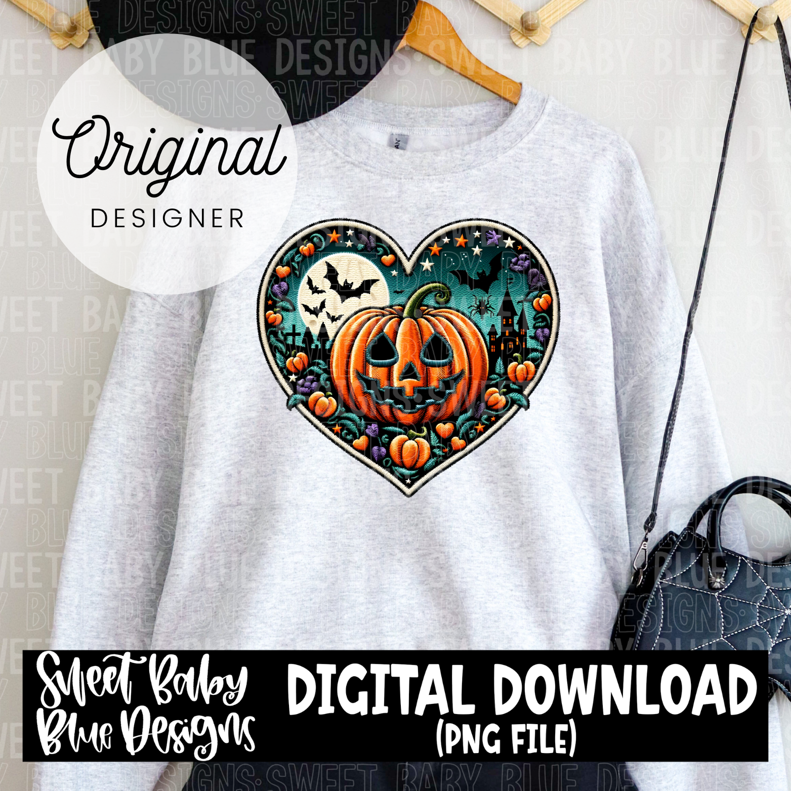 Halloween faux embroidery heart - Halloween - 2024 - PNG file- Digital Download