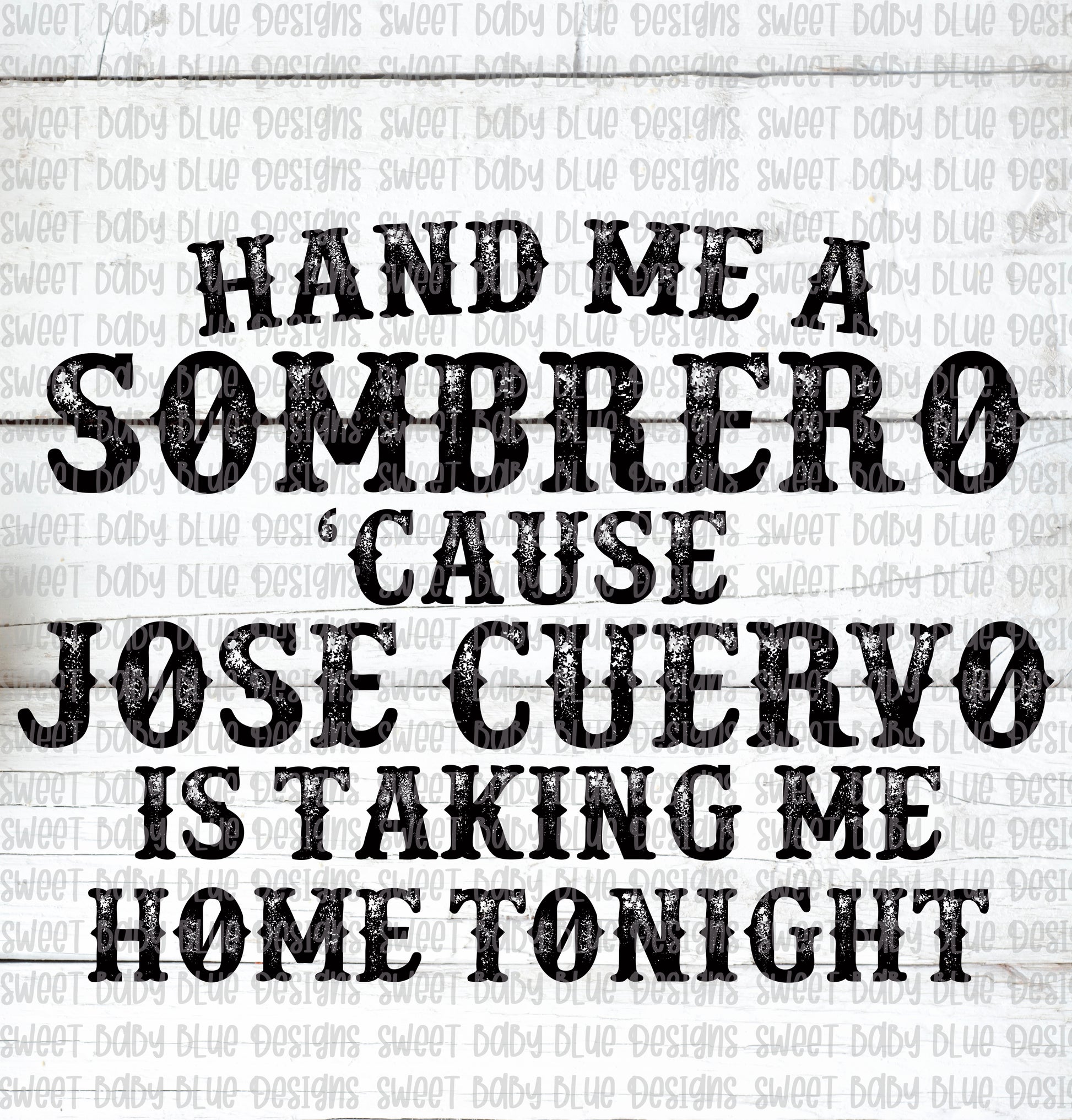 Hand me a sombrero cause Jose cuervo is taking me home tonight- PNG file- Digital Download