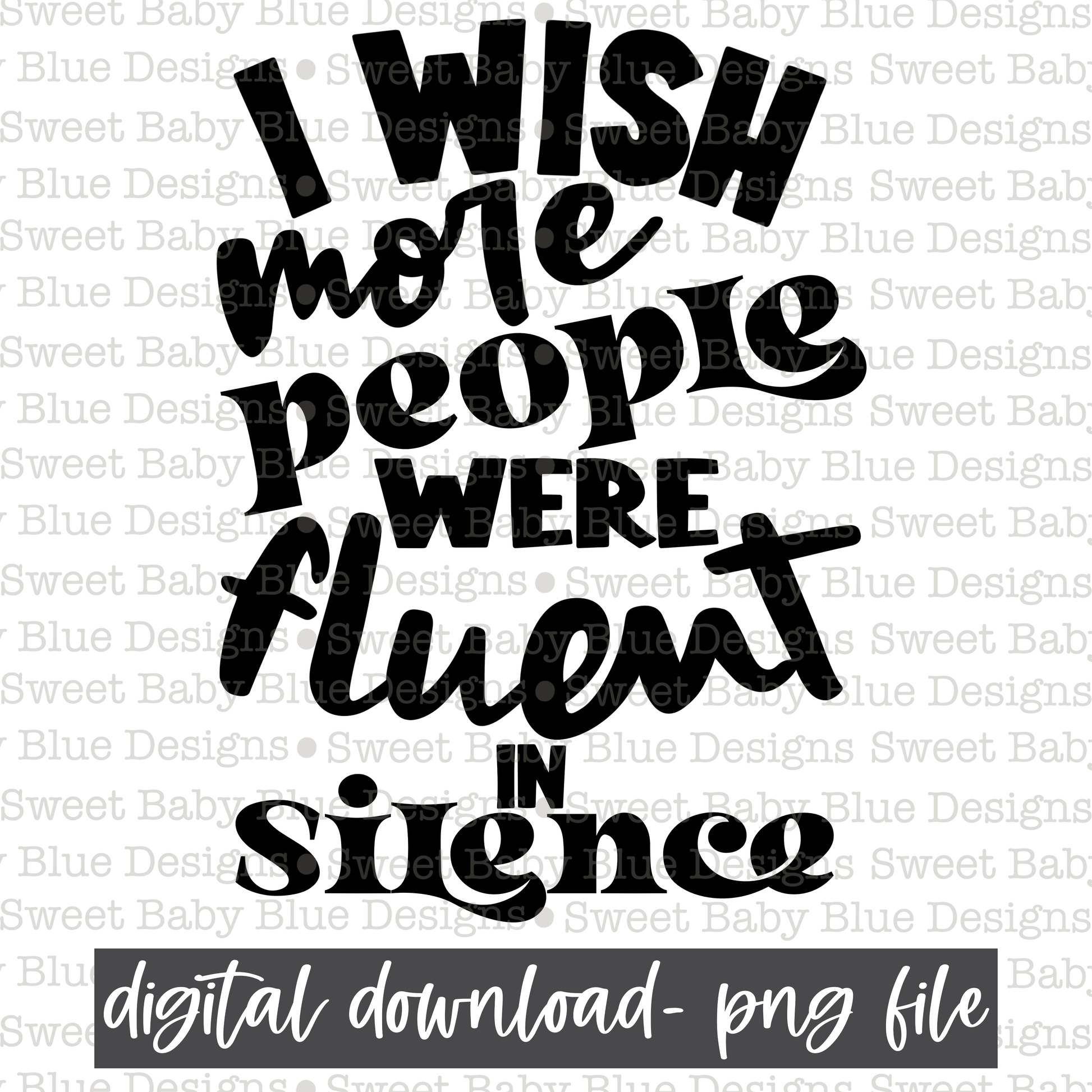 I wish more people were fluent in silence- Black font- 2021 - PNG file- Digital Download
