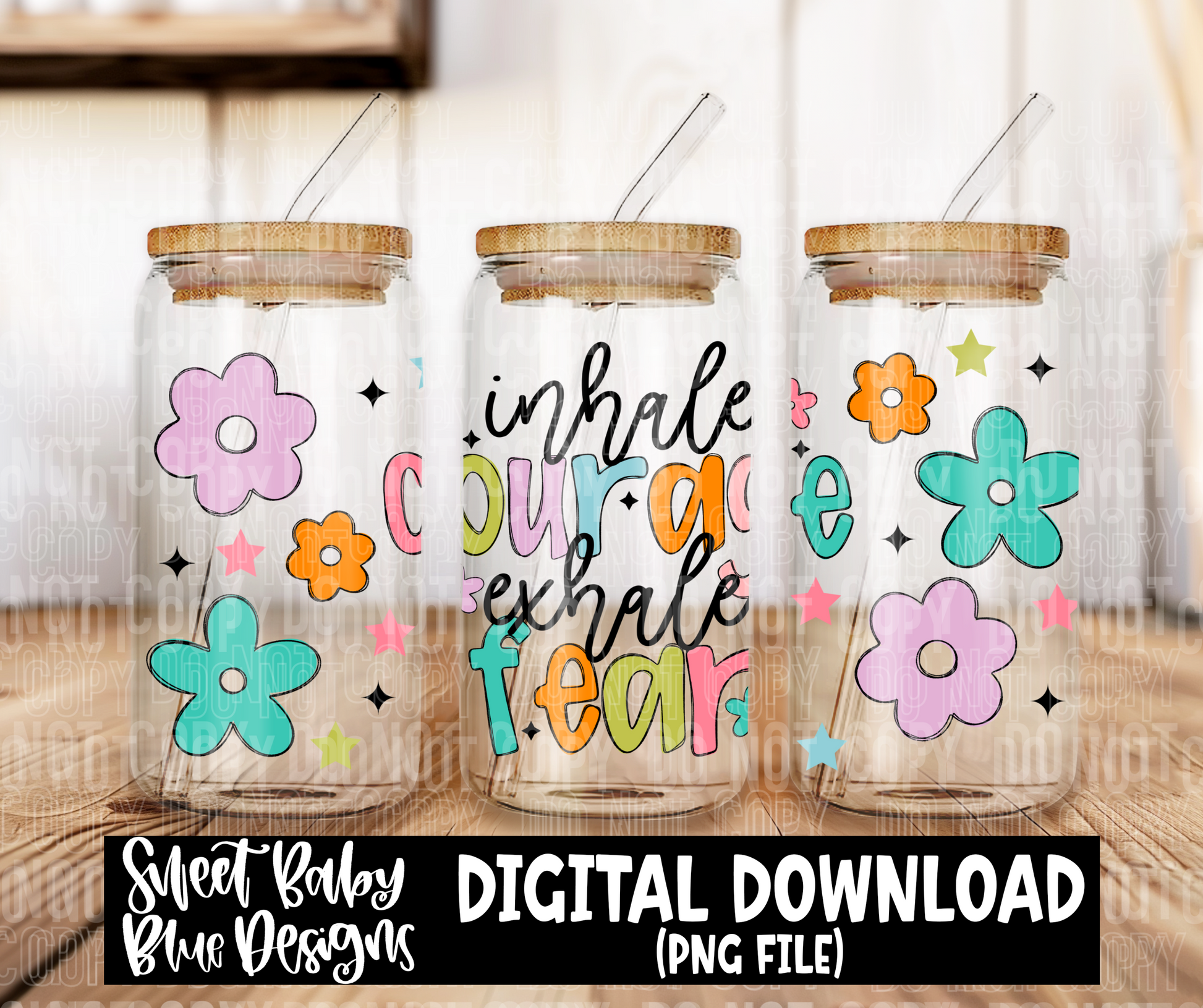 Inhale courage exhale fear- 16 oz glass wrap - 2024- PNG file- Digital Download