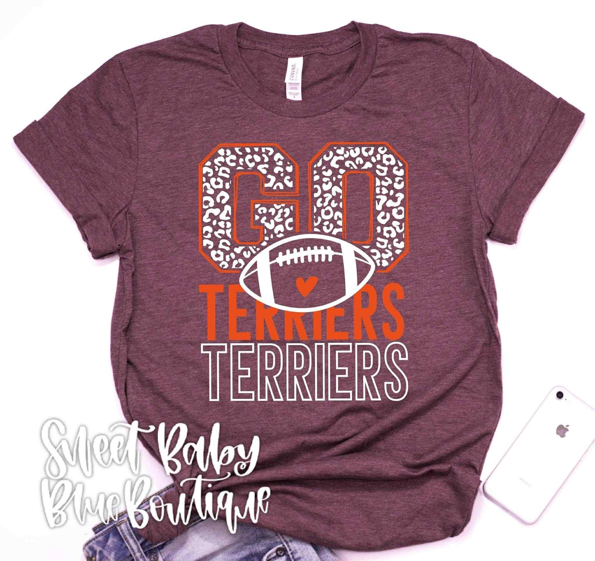 GO TERRIERS FOOTBALL (17 on back) - XL- heather maroon short sleeve (bella)