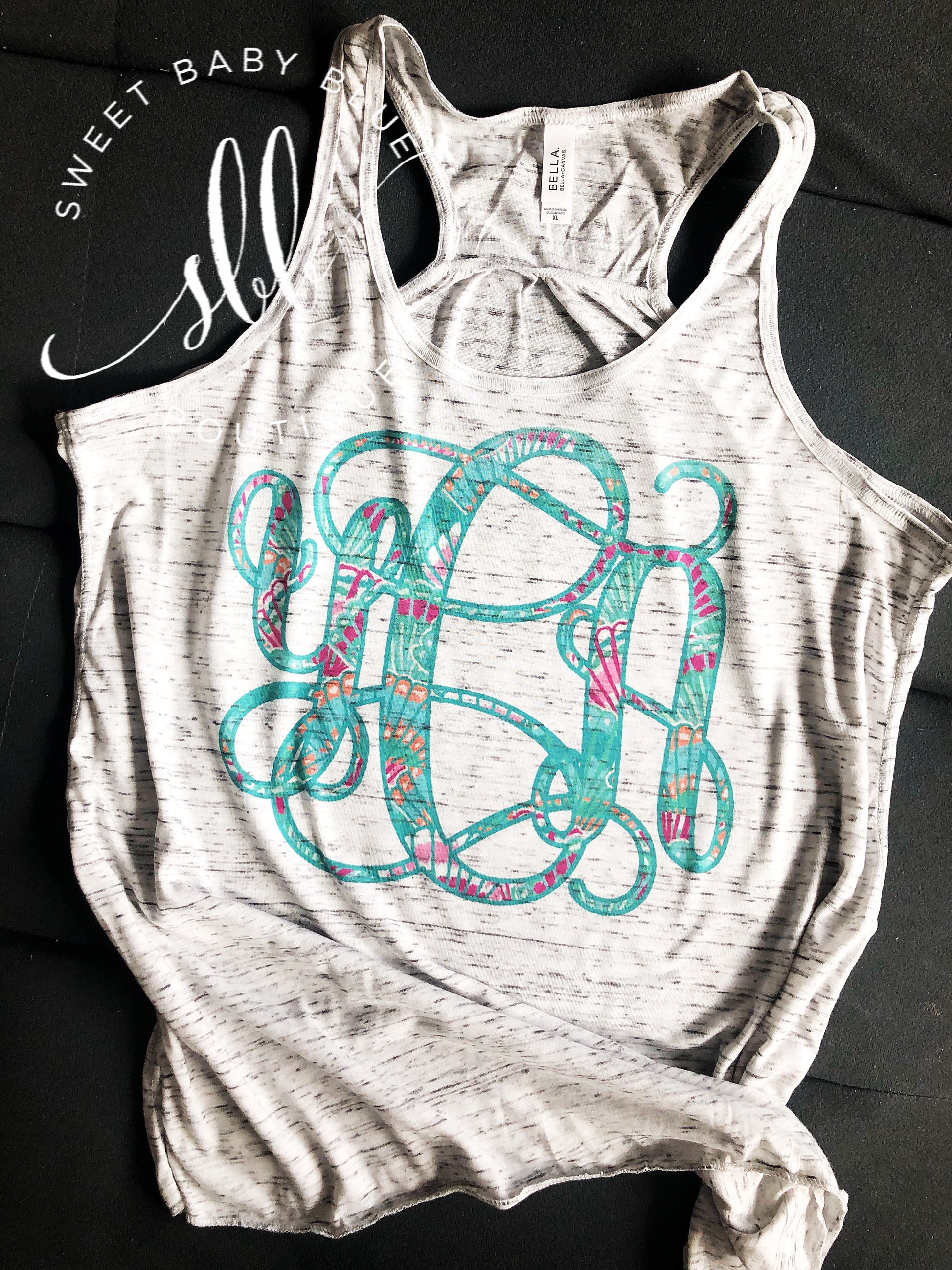 Shell monogram - medium mint green racerback tank / TLM curly font big on front