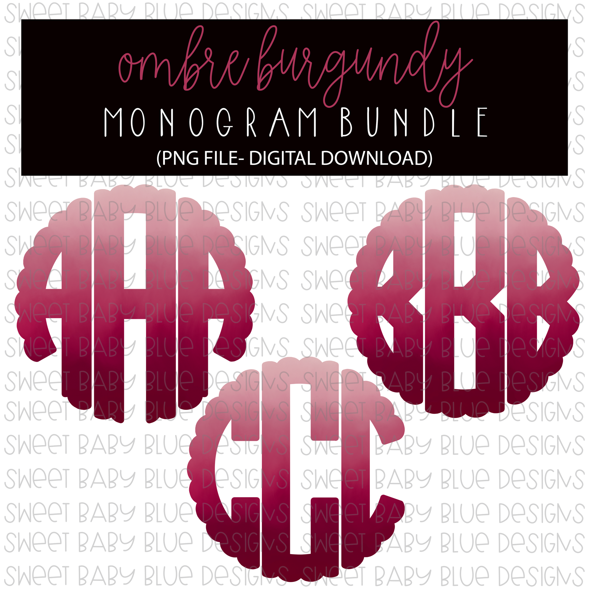 Ombre Burgundy- Monogram Bundle- PNG file- Digital Download