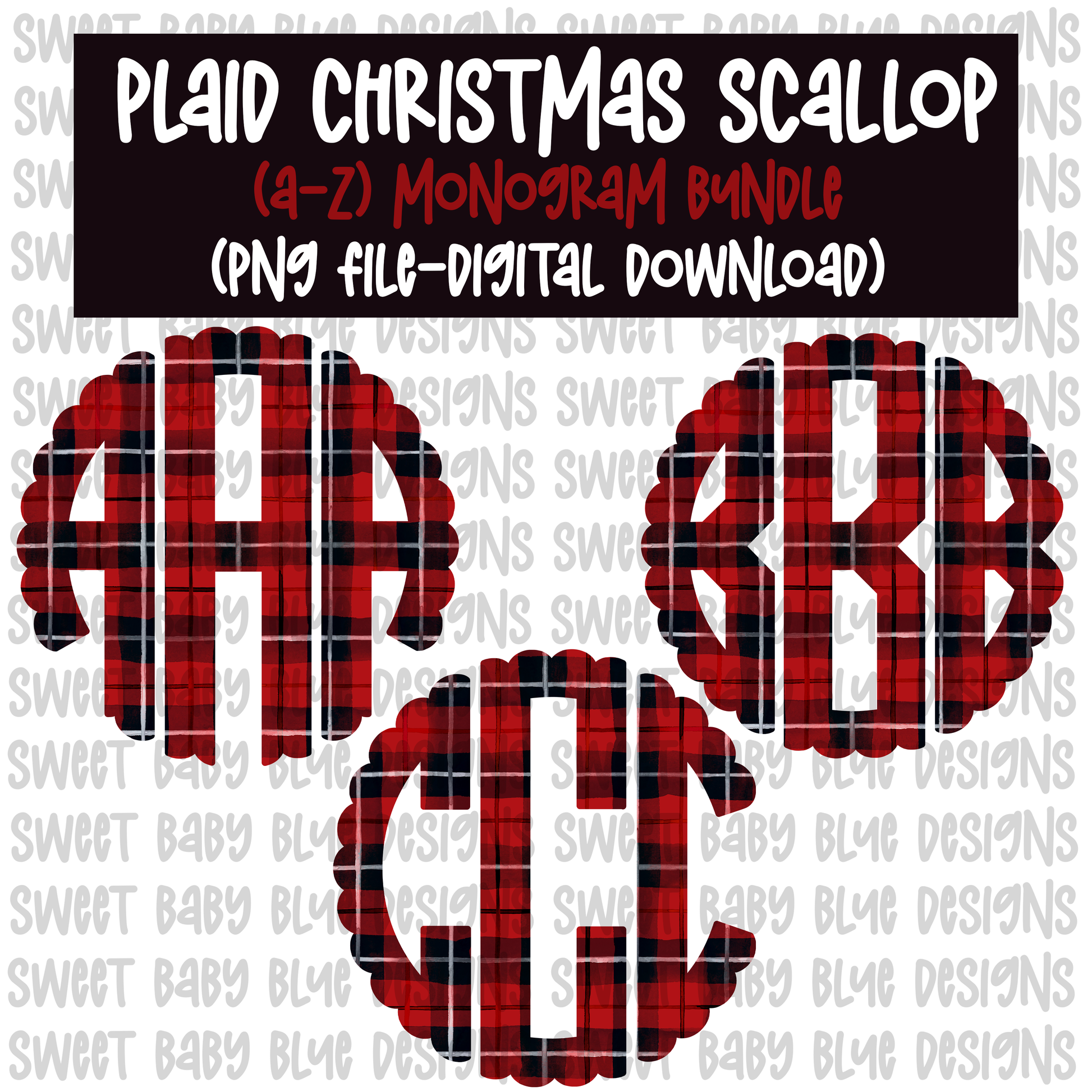 Red plaid Christmas- monogram bundle- PNG file- Digital Download