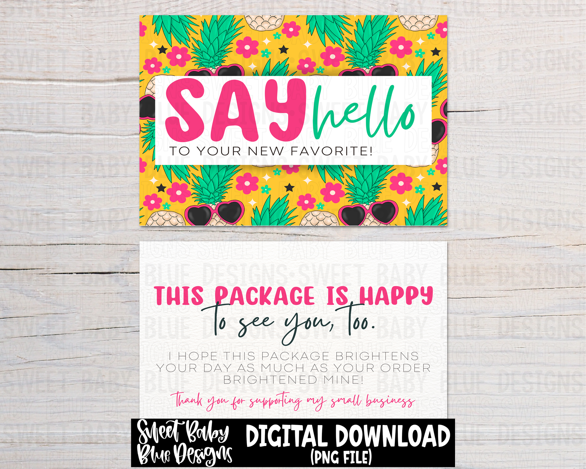 Say hello to your new favorite - Packaging card- Summer pineapple - Front and back digital download- 2023 - PNG file- Digital Download