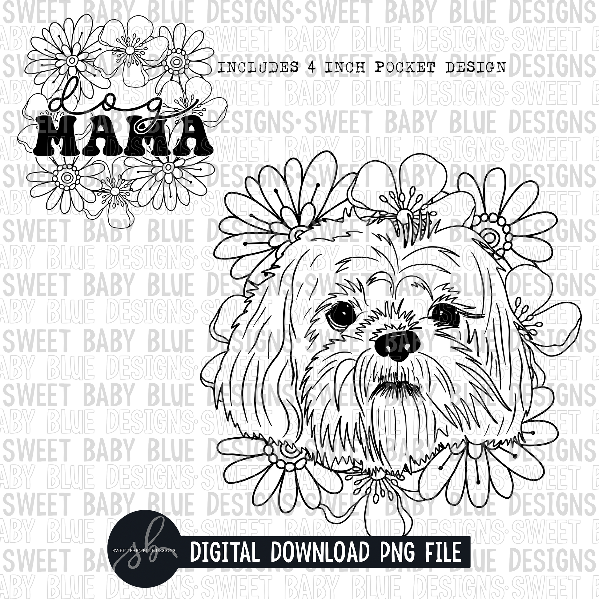 Shih Tzu floral- Single color- 2022 - PNG file- Digital Download