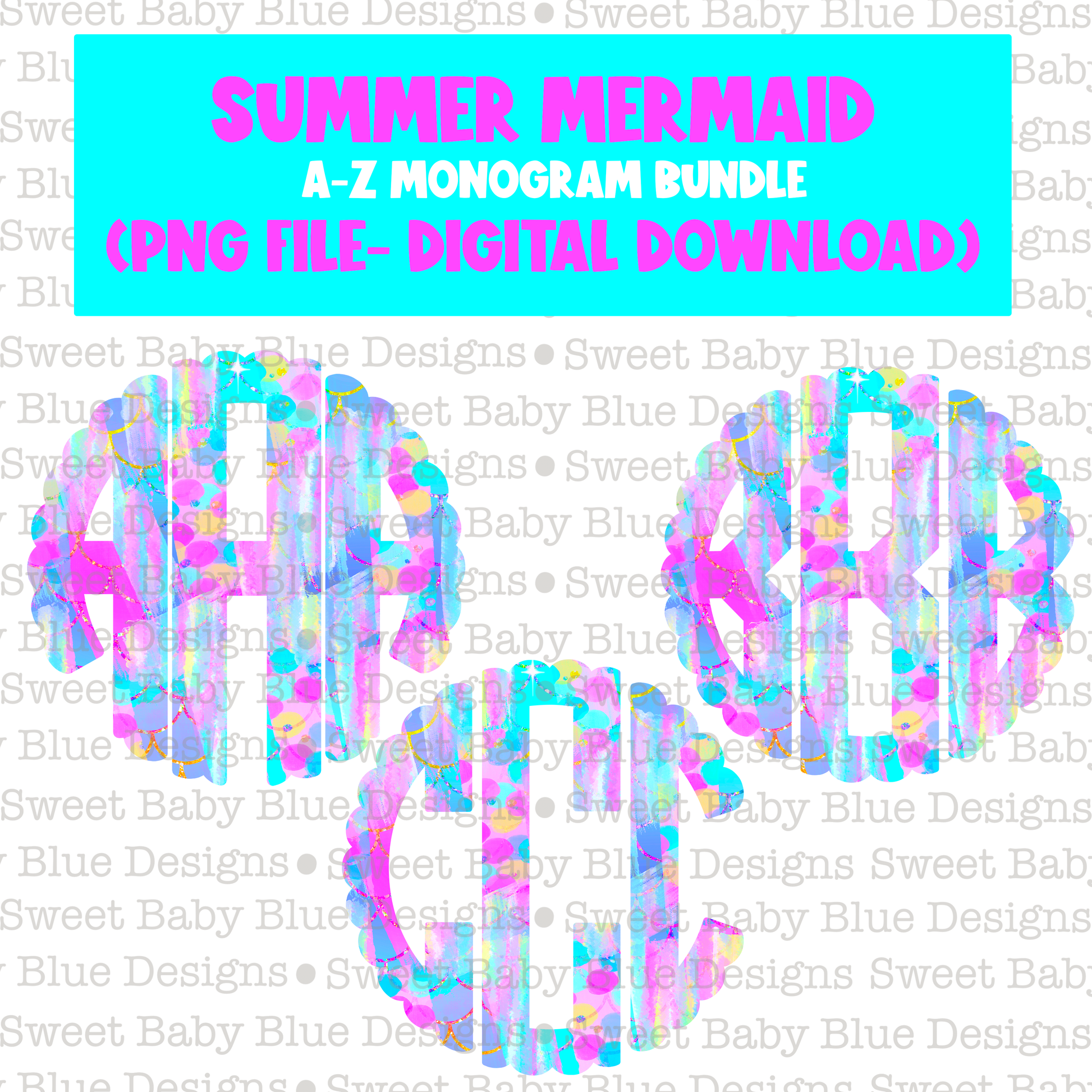 Summer Mermaid- Monogram Bundle- 2021- PNG file- Digital Download