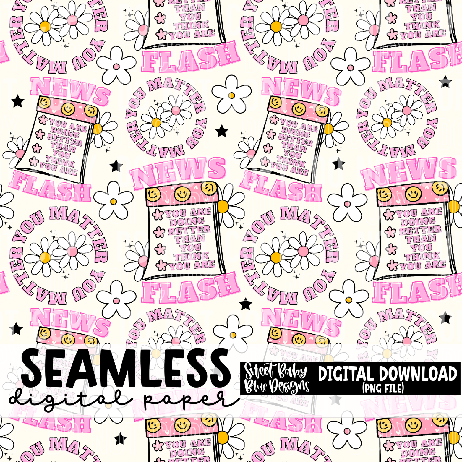 News flash you matter - Seamless - Digital paper- 2024 - PNG file- Digital Download